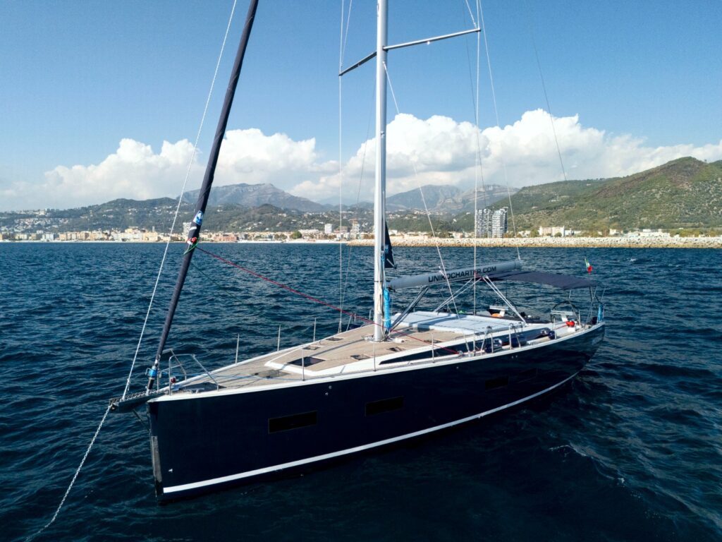 All’interno dell’imbarcazione troviamo 4 cabine doppie con 4 bagni elettrici e doccia privata, più la cabina equipaggio con bagno con accesso dall’esterno. La barca è full optional con un generatore di 4kw e aria condizionata a due vie. A rendere il soggiorno ancora più comodo, troviamo a bordo un frigorifero a colonna con ghiacciaia separata, cantinetta vini, microonde, cucina a 3 fuochi e forno elettrico.